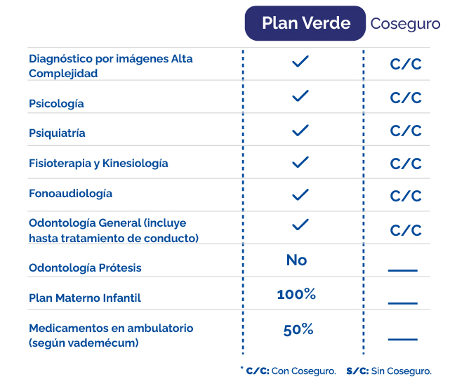 Amplia cobertura de salud con coseguros.